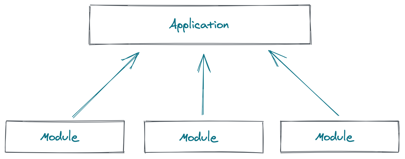 You no longer need to define imports and strict dependencies between modules, since they are all flatten and merged together by the Application.